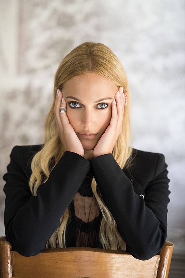 غلّفي رموشك بالماسكارا السوداء L'Oreal Paris Miss Hippie Mega Volume Mascara in Black، ثم صحّحي رسمة حاجبيك باستعمال الهلام الملوّن المقاوم للماء المصمم لذلك Bobbi Brown Long-Wear Brow Gel، وثبّتي وبر الحاجبين في شكل متناسق بواسطة الماسكارا الهلامية Givenchy Mister Brow Groom in Translucent.