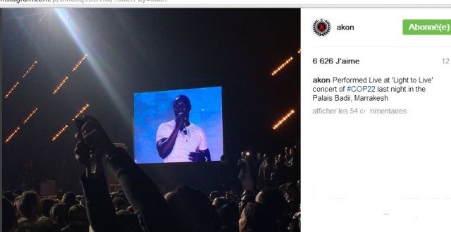 على هامش قمة المناخ كوب22، أحيت مجموعة من النجوم على رأسهم الفنان العالمي أيكون، المؤسس المشارك لـ"مؤسسة أيكون إضاءة أفريقيا"، حفلاً موسيقياً بعنوان "الضوء من أجل الحياة"، وذلك في قصر البديع في مراكش.