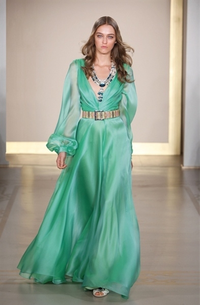 في العرض، أردت التركيز على المجموعة، ولكنّ الأكسسوارات فيها بهرتني، فكانت جزءاً من التصاميم. حبّات اللؤلؤ الكبيرة بحبال تنسدل على الظهر (واللؤلؤ هو نقطة ضعفي)، قطع كبيرة من الأحجار باللون الأخضر الزمرّديّ. الكريستال... كما جعلت العقود الضخمة تميل قليلاً إلى الجانب بدل وضعها وسط التصاميم مّما أعطاها لمسة ناعمة ذات دلال.