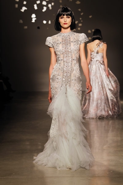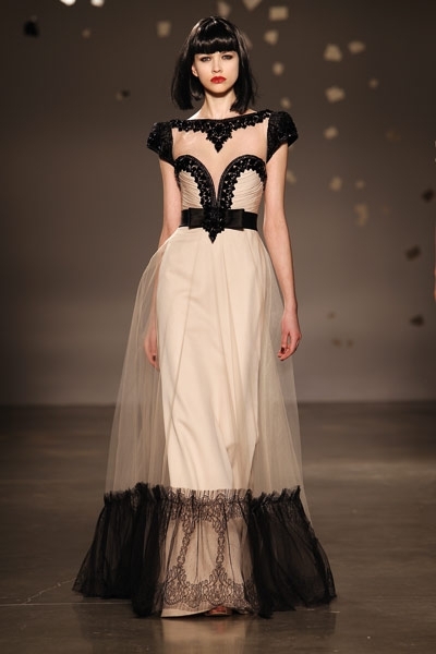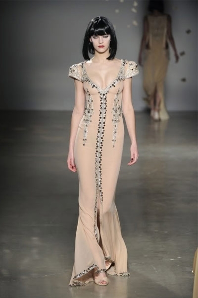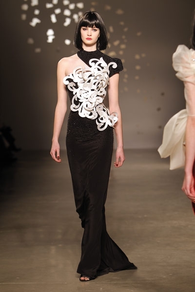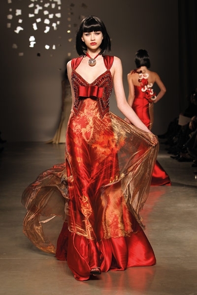 الرقي عنوان مجموعة المصمم جورج حبيقة للربيع والصيف. تصاميم مطرزة بخيوط الذهب والفضة والبرق بزخرفة جميلة وناعمة وأقمشة متنوعة من البروكار والتول والحرير والدانتيل والموسلين مطرزة بالأزهار والزخرفة العربية. التصاميم كلّّها تتسم بالخفة والحيوية والرقة لتضفي مزيداً من الأنوثة على من ترتديها. أما الألوان فتطغى عليها الأبيض والأسود والزهر المرمّد والأحمر اللامع والشمس المبهرة.