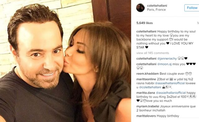عايدت كوليت زوجة الفنان عاصي الحلاني بعيد ميلاده الـ 46، ونشرت صورة لهما عبر حسابها الرسمي على "إنستغرام" خلال تواجدهما في العاصة الفرنسية باريس.