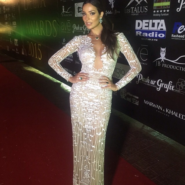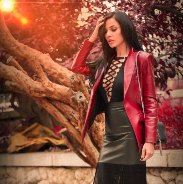 إثارة وجاذبية أضافتهما نادين إلى سلسلة إطلالاتها بالأزياء الجلدية والقصات الهندسية غير المتماثلة.