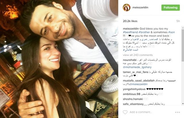 وعلّقت مي على الصورة وكتبت: "ويخليك ليا يا صاحب عمري واخويا وساعات أبني!!! بطولك ده.. كل اللي بتمناه اشوفك ناجح وسعيد دايما يا رب... وتفرح بيا"، وأضافت باللغة الانكليزيّة "أحبّك كثيراً."