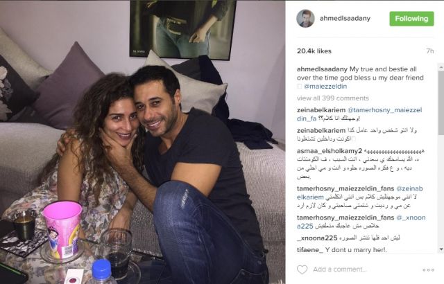 نشرت الممثّلة المصرية مي عز الدين، عبر صفحتها الرسميّة على تطبيق "انستغرام"، صورة جمعتها بزميلها وصديقها الممثّل المصري أحمد السعدني.