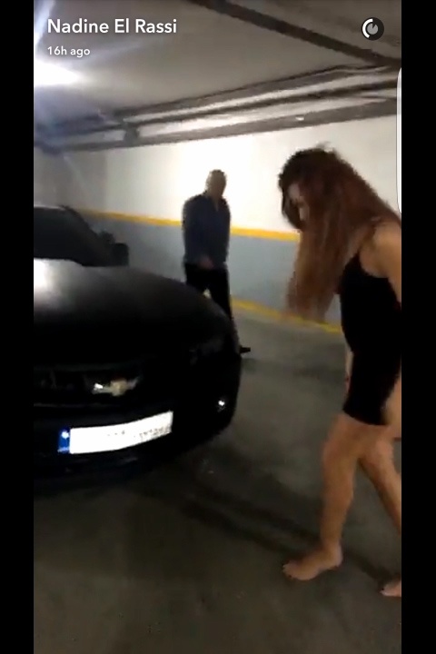 وقد صوّرت إحدى صديقات نادين إياها، حافية القدمين حيث كانت تتفقّد السيارة وتتفحّصها عن قرب، هي التي إنتقلت منذ فترة للعيش وحدها بعد إنفصالها عن زوجها، ويتمّ راهناً الإنتهاء من أوراق الطلاق.