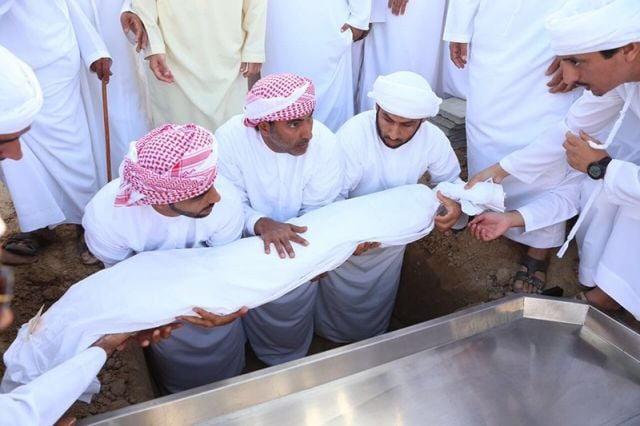 رُفعت صلاة الجنازة يوم أمس، في مسجد المطاوعة بالعين، على الأطفال، الذين تتراوح أعمارهم بين الـ4 و5 سنواتعمارهم بين الـ47ال: سلطان محمد سلطان الدرمكي، ومحمد مبارك خليفة بن زاهرة الخييلي، وحصة سعيد خليفة بن زاهرة الخييلي، بعد أن سقطوا في بئر منزل جدّتهم في منطقة النايفة.