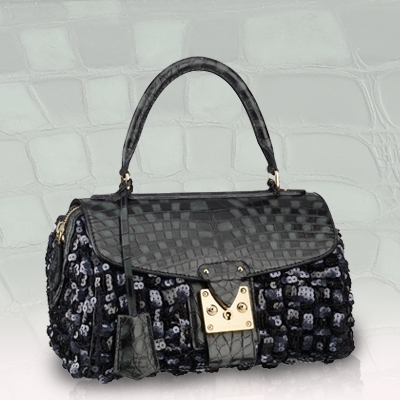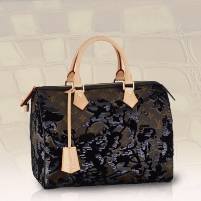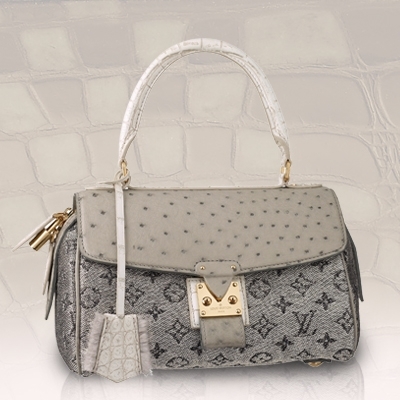 ومن المجموعات المتميزة تلك الحقائب التي تحمل الأحرف الأولى لاسم الشركة، والمصنوعة من خامة جاكارد التي تأتي في اللونين البرغندي والرمادي وبها شريطين، الأول عبارة عن شريط على الكتف يمكن الاستغناء عنه، والآخر شريط يمتد من اليمن إلى اليسار وفي نهاية كلا الشريطين قطعة من الجلد الملمع. لدينا أيضًا حقيبة من خامة جاكارد تحمل قطعة معدنية على شكل حرفي (LV) وتأتي في مزيج من اللون الفضي والرمادي، بالإضافة إلى مقبض وشريط مصنوع من جلد النعام ويد مزدوجة من فرو المنك وحواف من جلد التمساح. وبينما يتمسك الطراز الأصلي من حقائب "Speedy" بهذه اللمسة، فإن التصميم الحديث والجذاب لهذه الحقائب قد أدخل الترتر والخامات الناعمة؛ مما يعكس الروح الغنية لتلك المجموعة. وتعرض لويس فويتون لنا حقيبة الطبيب الأكثر بساطة والتي لا تقل جمالاً عن مثيلاتها وهي مصنوعة من جلد الأبقار المحبب، وتشمل الإصدار الأسود والوردي الفاتح ومزيج الأزرق والرمادي، وتحتوي على يدين وإطار وحرفي (LV) مطرزين على جانب واحد من الحقيبة.