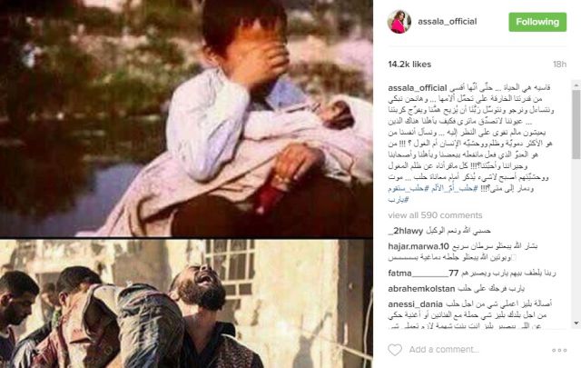أبدت الفنّانة السورية أصالة تعاطفها مع ضحايا حلب، وكتبت على "انستغرام": "قاسية هي الحياة... حتّى أنّها أقسى من قدرتنا الخارقة على تحمّل آلامها... وها نحن نبكي ونتساءل ونرجو ونتوسّل رَبَّنَا أن يُزيح همَّنا ويفرّج كربتنا... عيوننا لا تصدّق ما ترى فكيف بأهلنا هناك الذين يعيشون ما لم نقوى على النظر إليه... ونسأل أنفسنا من هو الأكثر دمويّة وظلم ووحشيّة الإنسان أم الغول؟!!! من هو العدوّ الذي فعل مانفعله ببعضنا وبأهلنا وأصحابنا وجيراننا وأحبّتنا؟!!! كل ما قرأناه عن ظلم المغول ووحشيّتهم أصبح لاشيء يُذكر أمام معاناة حلب ... موت ودمار إلى متى؟!!! حلب أُمّ الألم. حلب ستقوم."