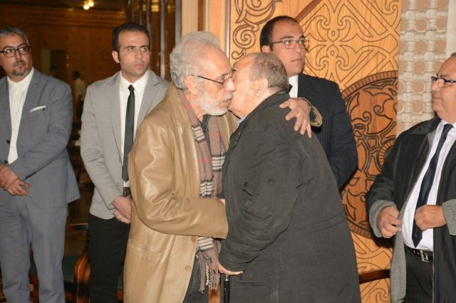 بالصور - الحزن يكسو وجوه عادل إمام ويسرا وحسين فهمي في عزاء أحمد راتب