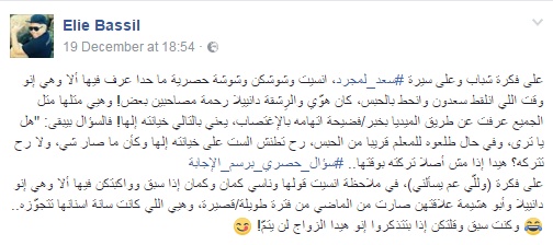 وكتب باسيل في تدوينته: "على فكرة شباب وعلى سيرة سعد لمجرد، انسيت وشوشكن وشوشة حصرية ما حدا عرف فيها ألا وهي إنو وقت اللي انلقط سعدون وانحط بالحبس، كان هوّي والرِشقة دانييلا رحمة مصاحبين بعض! وهيي متلها متل الجميع عرفت عن طريق الميديا بخبر/فضيحة اتهامه بالإغتصاب، يعني بالتالي خيانته إلها! فالسؤال بيبقى: "هل يا ترى، وفي حال طلعوه للمعلم قريبا من الحبس، رح تطنش الست على خيانته إلها وكأن ما صار شي، ولا رح تتركه؟ هيدا إذا مش أصلا تركته بوقتها.. سؤال حصري برسم الإجابة.