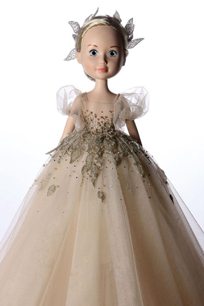 وقد صمم حبيقة من أجل المشاركة في المعرض دمية ترتدي فستاناً طويلاً من تول الحرير بلون البيج المائل إلى ذهبي ومزيّن بأحجار الشواروفسكي وبأوراق ذهبية مزينة باللآلئ. وكان قد استوحى حبيقة هذا الفستان من أحد فساتين زفاف مجموعته الأخيرة.