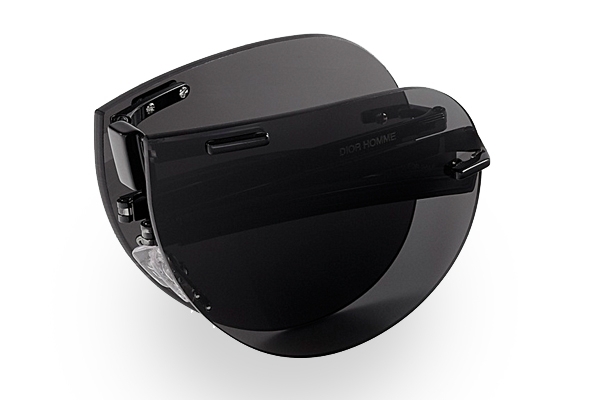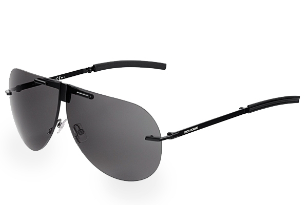 نظارات رجالية سوداء بتصميم خاص وعملي يسمح بطيّها، وهي خفيفة الوزن وتتميّز بحماية مئة في المئة من الأشعّة ما فوق البنفسجية UVA & UVB، من Dior Homme. أكسسوار رجالي أنيق وضروري للربيع والصيف.