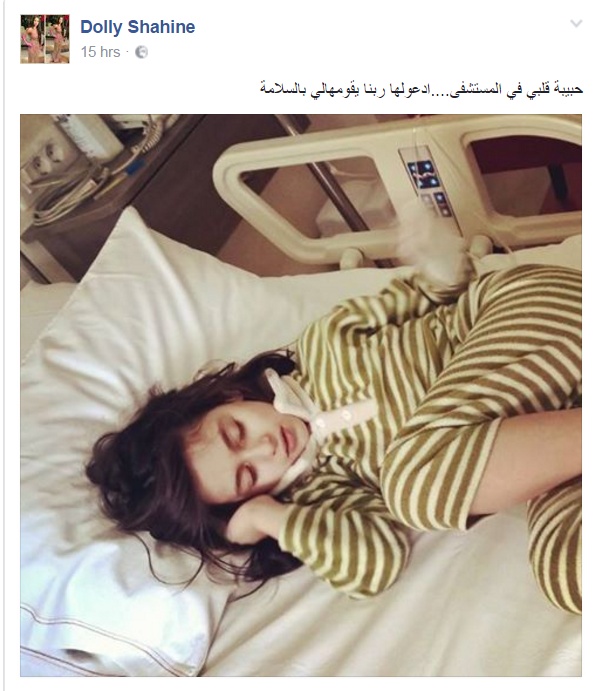 طلبت الفنانة دوللي شاهين من جمهورها الدعاء لابنتها الصغيرة نور بسبب حالتها الصحية.