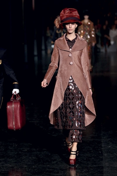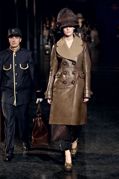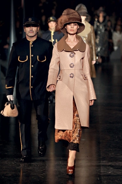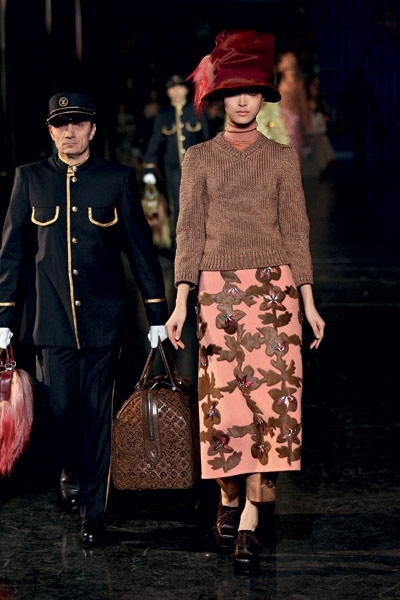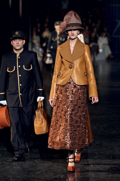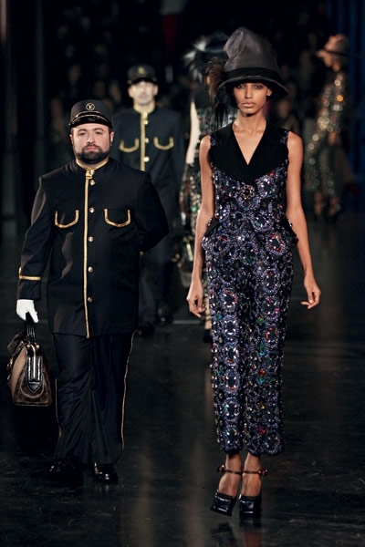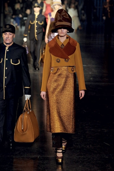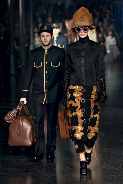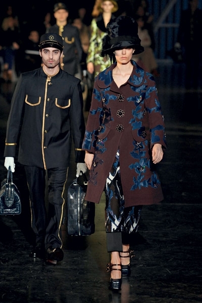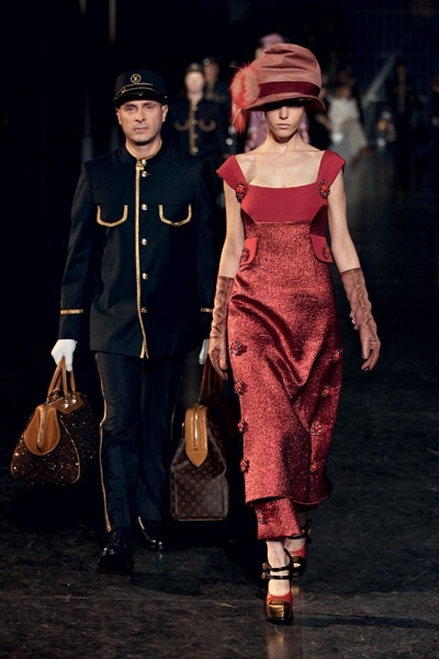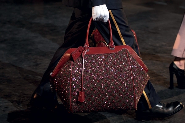 في المجموعة الجديدة للنساء لخريف وشتاء 2012-2013، اعتمدت Louis Vuitton بساطة الأشكال مع تعقيد الأنماط والأقمشة والزخارف في الملابس والأكسسوارات. فقد تم استخدام أقمشة البروكاد والجاكار مع تطريزات وأبليكيه وحجارة بلاستيك مقطوعة باللايزر. أقمشة التنسل محبوكة مثل التويد المتلألئ، والخيوط المعدنية تحاكي أقمشة البطانيات الأفغانية. جلد الكنغر تم استعماله على شكل رقع ملتصقة ببعضها وتم تزيينه بحبات البلاستيك. أما حقائب Vuitton هذا الموسم فهي أكبر من المعتاد. مستندة على أشكال حقائب السفر التي ابتكرتها دار Vuitton في الماضي، وإنما بأحجام أكبر، هناك الحقائب الخاصة بالقبعات، والماكياج، وحقائب عطلة نهاية الأسبوع والحقائب المخصصة للاستعمال اليومي. كلها مصنوعة من قماش Monogram التقليدي مع زخارف جلدية أو تطريزات من البرق اللماع.