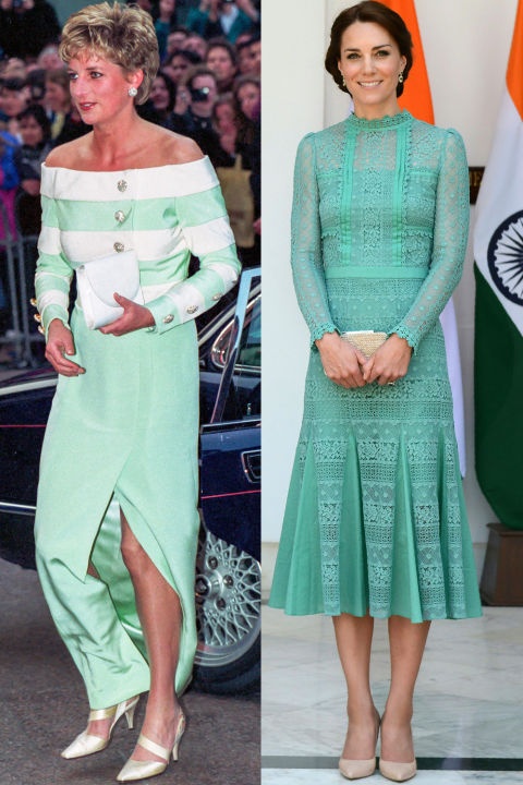 ظهرت زوجة دوقة كامبردج كيت ميدلتون بالعديد من الإطلالات التي أعادت من خلالها إطلالات الليدي ديانا من خلال مجموعة من الفساتين المتشابهة إن في القصات أو في الالوان.