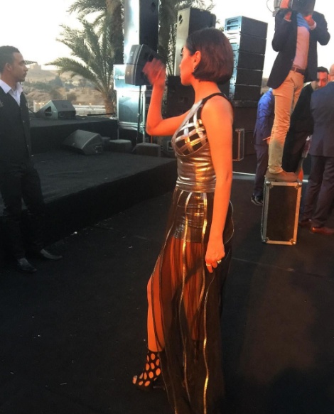 وأطلّت رئيس بفستانٍ قصير باللونين الذهبي والأسود، مع قماش شفّاف فوقه، كشف عن جزء كبير من ساقيها.
