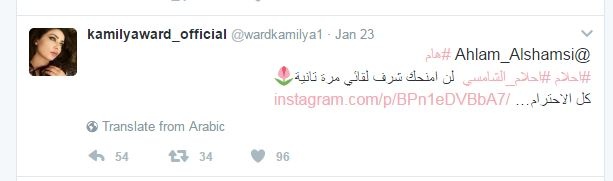 يبدو أنّ الجزائرية كاميليا ورد لا زالت تُتابع هجومها على النجمة الإماراتية أحلام، الحكم في برنامج Arab Idol الذي خرجت من منافسته ورد في الأسبوع الأول بعد عدم إنقاذ الجمهور لها.