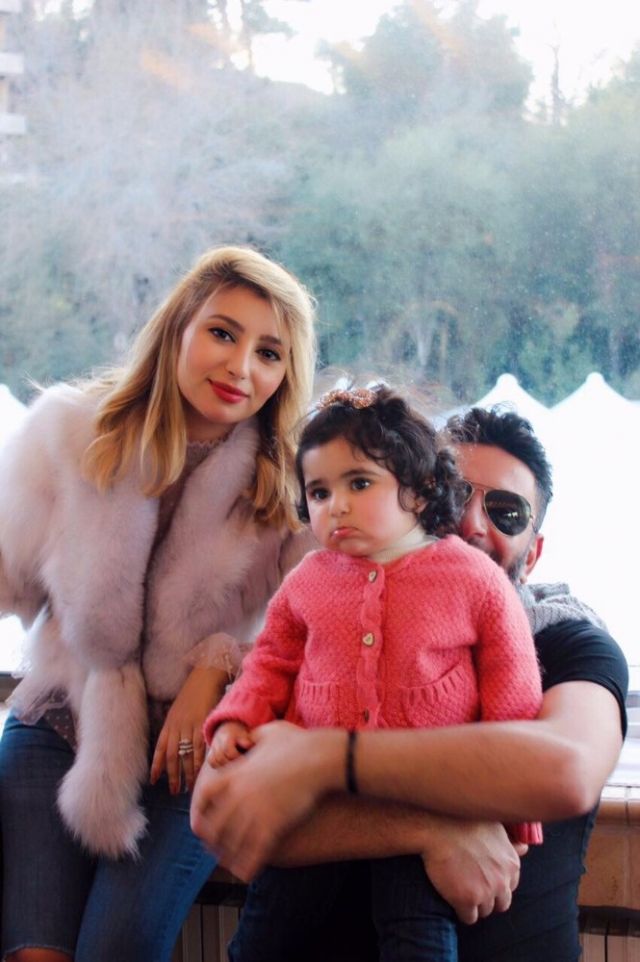 وظهر برجي برفقة زوجته المغربية سنا، وطفلتهما الوحيدة نور، في صورة عائلية جميلة ومفرحة.
