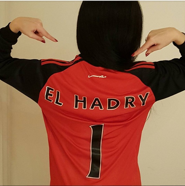 ارتدت مي تيشرت عصام الحضري ونشرت صورتها على "انستغرام" وعلقت عليها: "نجم وهتفضل طول عمرك نجم ونجمي المفضل في الكرة.. مبروك لمصر.. السد العالي.. أسد الملاعب".