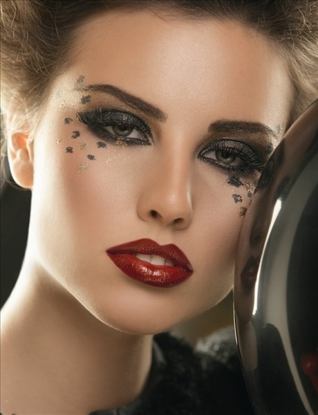 - على العينين، تم استعمال الظلال Shadow Show 13 Dressy Black من جيفنشي Givenchy وColor Design Star Bronzer 608 من لانكوم Lancôme. برق ذهبي لماع من مايك آب فور إيفر Make Up For Ever.