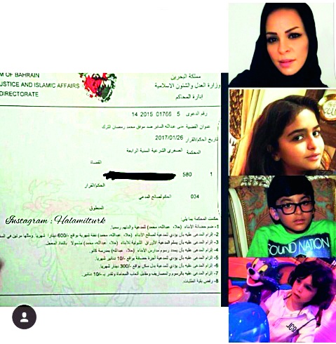 يبدو أنّ الأحداث تتسارع في قضية محمد الترك، زوج الفنانة المغربية دنيا بطمة وطليقته منى السابر، والدة الفنانة الشابة حلا الترك، والتي استطاعت الحصول على حكم من وزارة العدل والشؤون الإسلامية - إدارة المحاكم في مملكة البحرين، بحضانة الأولاد. وقد انتشرت صورة للحكم والمستند الذي صدر رسمياً، والذي يقضي بضمّ حضانة الأولاد حلا، عبدالله ومحمد إلى والدتهم رسمياً، هذا فضلاً عن دفع محمد الترك نفقة للأولاد بقيمة 600 دينار، كما تسليمه كل الأوراق الثبوتية الى السابر.