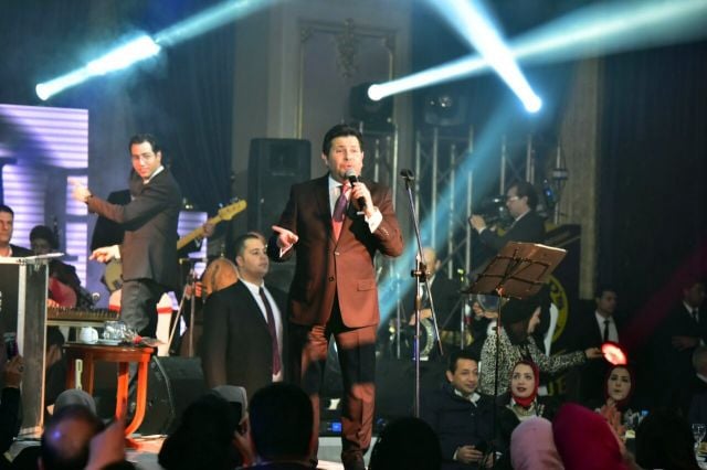 وكان في استقباله فور وصوله الحفلة مدير أعماله تامر عبد المنعم الذي تواجد مبكرا للإشراف على تجهيزات فرقته الموسيقية واختبار أجهزة الصوت، وشارك في احياء الحفل فرقة كرافان، والراقصة الروسية ديانا.