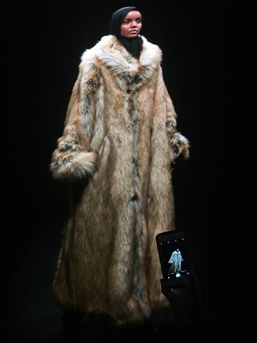 سجلت المراهقة الأميركية حليمة عدن من اصول صومالية لحظة تاريخية سيشهدها أرشيف الموضة. أول عارضة أزياء محجبة تمشي على منصة عروض الأزياء، حيث خطت أولى خطواتها في أسبوع الموضة في نيويورك خلال عرض "ييزي" لمغني الراب الشهير كانيية ويست وكتنت عدن ترتدي معطفاً طويلاً من الفرو .