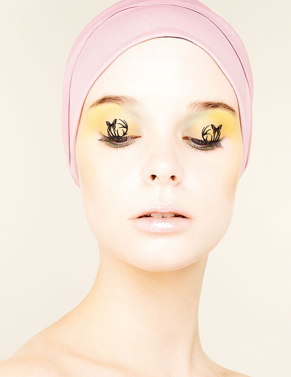 ابسطي الظلّ الأصفر على كامل الجفن الأعلى، وأضيفي لمسة من الظل الأخضر عند الزاوية الداخلية للعين، ثم حدّدي خط رموشك السفلي بالظلّ الأخضر، وحدّدي بعدها عينيك من الداخل بالظل الزهري.