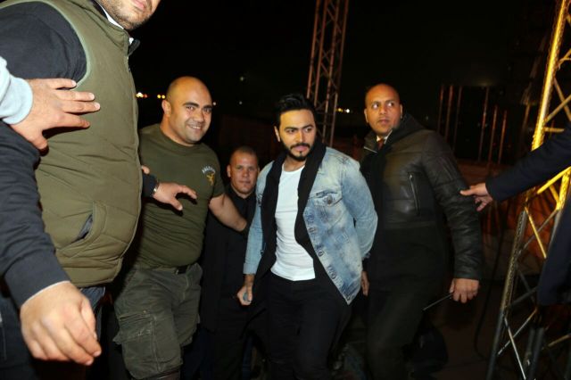 بالصور - شاهدوا تامر حسني وسط آلاف الطلاب
