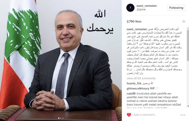 وعلّق سعد على الصور وكتب: "اليوم كنت المفروض نزّلك هيدي الصورة دعماً إلك بالانتخابات النيابية وبس تفوز كنت بدي غنيلك تعو يلا نباركلو بس وعيت الصبح على ابشع خبر تلقيتو بحياتي خبر وفاتك".