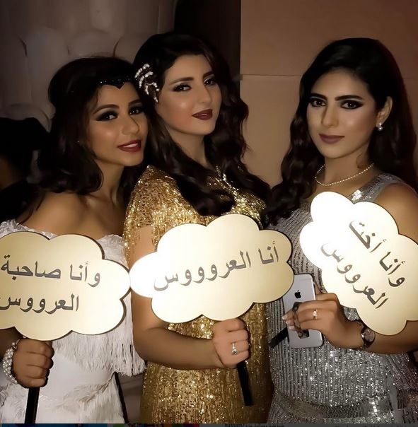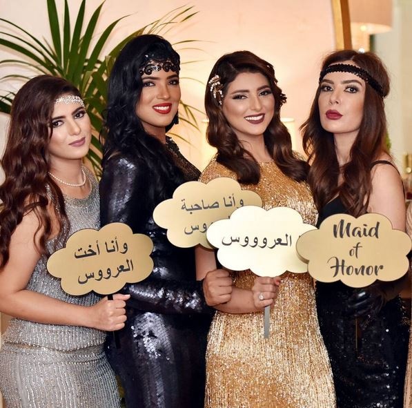 وارتدى الجميع الفساتين اللامعة، واعتمدنَ تسريحات الريترو واكسسوارات الشعر البراقة، وحملن يافطات كتب عليها عبارات مميزة مثل "أنا صديقة العروس"، و"قالت أجل"، و"العروس"، بطريقة طريفة مليئة بالمرح والفرح.