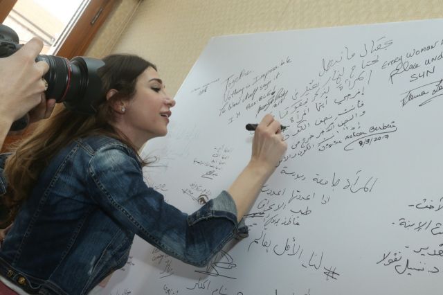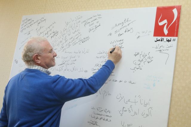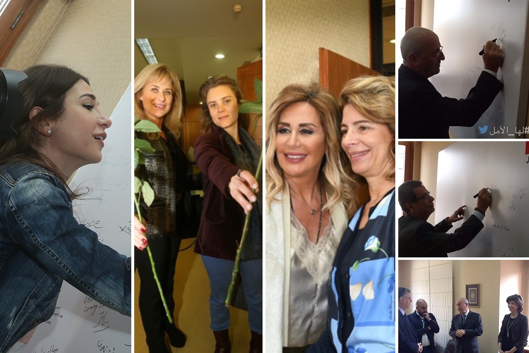 في إطار حملة "الأمل" التي أطلقتها مجلة "لها" بداية الشهر وفي يوم المرأة العالمي اجتمع مجموعة من السياسيين والفنانين والاعلاميين في مكاتب المجلة للتوقيع على لوحة الأمل.