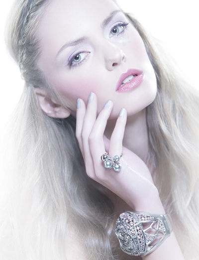 كما لو أنها خارجة للتو من حكاية خرافية، جمال بألوان لؤلؤية، مع أبيض قزحي وبنفسجي ووردي. القليل من الفضي ويصبح الحلم حقيقة...