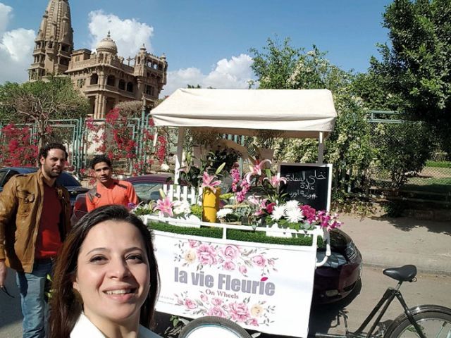 عشق ساندرا مجدي للورود، وهي مهندسة معمارية، دفعها للتجول بعربة في شوارع القاهرة لبيع الورد، وتقول عن مشروعها: «منذ صغري وأنا أحب الورود، حيث نشأت في أسرة تعشق الفن والموسيقى والورود. ورغم عملي كمهندسة معمارية واهتمامي الكبير بجمع الورود، شعرت أن الورد يحتاج إلى المزيد من وقتي، ففكرت في افتتاح محل في إحدى المناطق الراقية في القاهرة، أعرض فيه الورود بطريقة مبتكرة، تجذب الزبائن الأغنياء، لكن بعدها وجدت أن الفكرة تقليدية، وأن هناك مئات المحال التي تبيع الورود في القاهرة، كما لاحظت أن زبائننا ليسوا من المارّة، بل هم زبائن معروفون لدينا يشترون منا الورد باستمرار، ومن هنا خطرت في بالي فكرة رأيتها جريئة لكنني لم أتوانَ للحظة في تنفيذها، وهي التجول بالورد في الشارع».