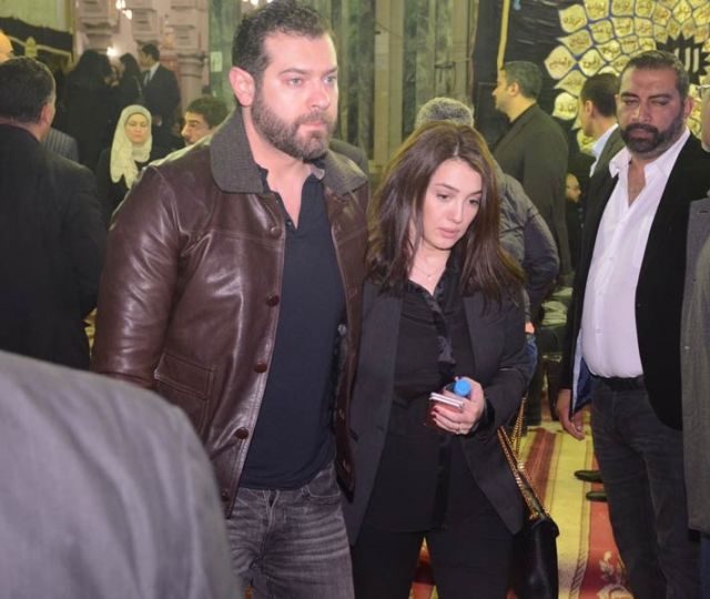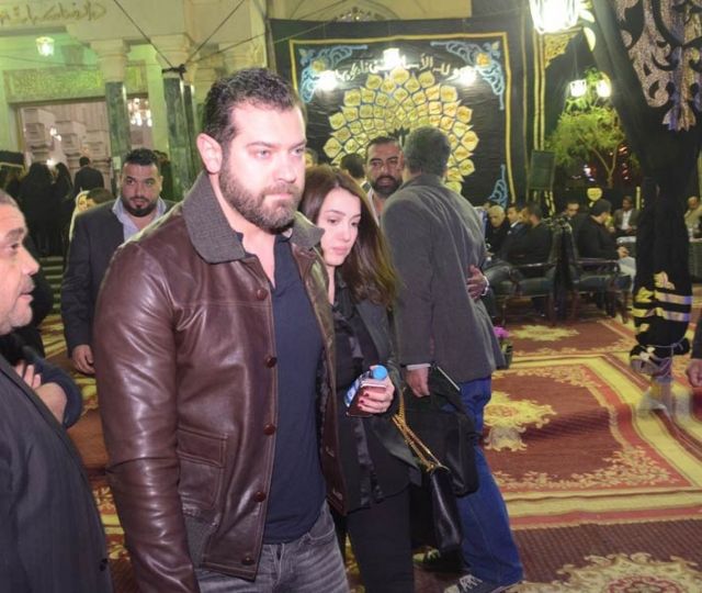 وأطلّ النّجمان خلال عزاء والد الفنان المصري خالد سليم، في مسجد عمر مكرم في التحرير.