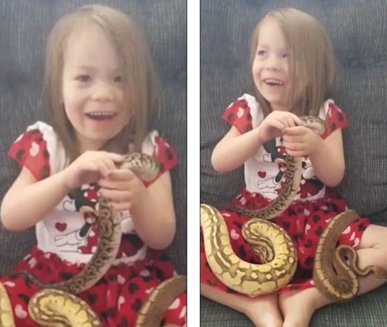 بالفيديو - طفلة تلعب مع 3 ثعابين ترعب "فايسبوك"!!