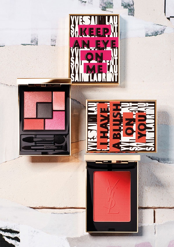 استوحت «إيف سان لوران» Yves Saint Laurent مجموعة ماكياجها للربيع من فن ال«غرافيتي» Street Art فجاءت نابضة وحيوية. تضم المجموعة الجديدة: أحمر خدود قشدي بتصميم فريد Baby Doll Kiss & Blush Duo Stick وهو متوافر في ستة ألوان، علبة ظلال الجفون الخماسية Palette Collector The Street & I، بودرة الخدود المرجانية المحدودة الإصدار Face Palette Collector The Street & I، أقلام الكحل المزدوجة Dessin du Regard Arty Duo في ثلاث ألوان هي: الأبيض، البرتقالي، والوردي. يضاف إلى المجموعة، طلاء الأظافر La Lacque Couture بألوان الأبيض، البرتقالي والرمادي الداكن، أحمر الشفاه القشدي Rouge Volupte Shine Oil-in-Stick بأربعة ألوان حيوية، وملمّع الشفاه Gloss Volupte بلوني الفوشيا والبرتقالي.