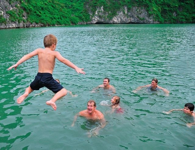 ولكن ليس التجوال على الدراجات الهوائية هو المغامرة الممتعة الوحيدة، وإنما المبيت ولو لليلة واحدة في مركب فندقي تستيقظون على مشاهد خاطفة للأنفاس بين جزر الحجر الجيري المنبثقة في خليج ها-لونغ بمياهه المرقّطة بآلاف القمم الخضراء والجزر الصغيرة.