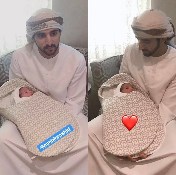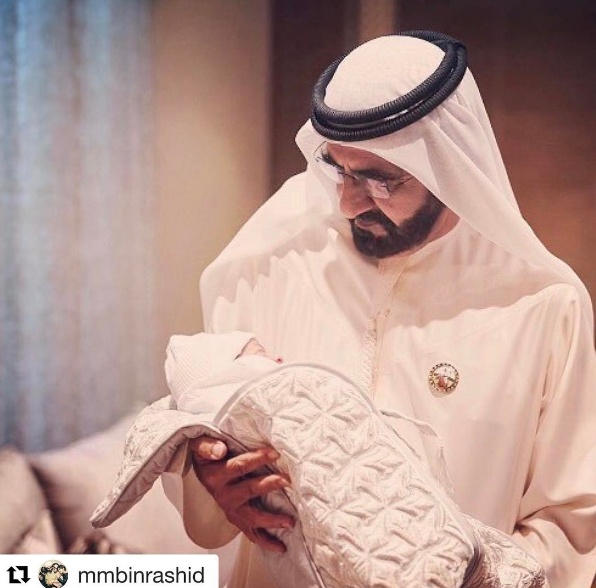 بالصور - محمد بن راشد يحمل حفيده الجديد بين يديه
