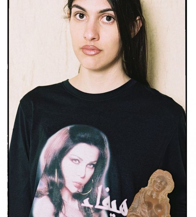 مبادرة مميزة قامت بها دار Nafsika Skourti الأردنية للأزياء النسائية حيال مسيرة وهبي كامرأة عربية، فطُبِعَت صورها على إحدى تصاميم هذه المجموعة لخريف 2017 شوهدت خلال عرض Fashion Forward في دبي.