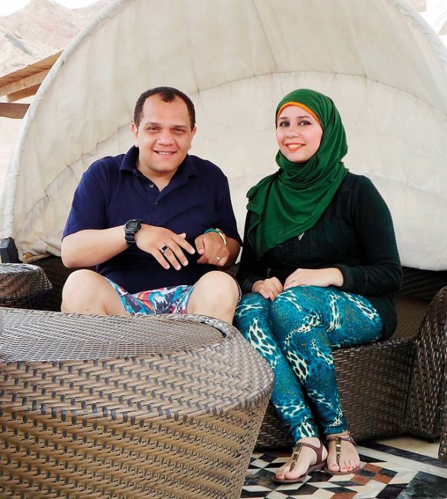 وتقول زوجته رحمة بحري: «الزواج من جنسية مختلفة مغامرة كبيرة في طبيعة الحال، خصوصاً مع اختلاف الثقافات وبعد المسافات، لقد واجهنا صعوبات في بداية الزواج، لكنه تمّ الزواج بحمد الله، وأتذكر مواقف كثيرة تؤكد دعم زوجي لي ووقوفه الى جانبي، أهمها أنه يساعدني دائماً في التعرف الى المنتجين والفنانين المصريين، فأنا فنانة تونسية، لكنني لم أعمل في مصر من قبل، كما يصطحبني لحضور المناسبات معه للاختلاط بنجوم الفن، وذلك إيماناً منه بموهبتي وقدرتي على تحقيق نجاحات في هذا المجال».