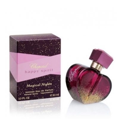 Chopard Magical Nights إصدار محدود متألّق من قدّمت شوبارد العطر الرائع ماجيكل نايتس، ذا الإصدار المحدود من عطرها هابي سبيريت Happy Spirit، ليتحلّى بأروع ما فيه. فالقارورة الصغيرة المصمّمة تصميماً رومانسياً على شكل قلب، ملوّنة بدرجات لونية أعمق وأكثر غموضاً مشرّبة بدرجات اللون الأرجواني، وهي تشعّ بلون ذهبي، تماماً مثل علبتها الراقية الأنيقة ذات اللون الأرجواني. أما داخل الزجاجة، فقد أعيد ابتكار العطر برقّة ليغدو نسخة أكثر قوة.