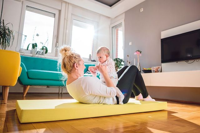 وهذه بعض الحركات الرياضية التي يمكن الأم القيام بها مع طفلها: