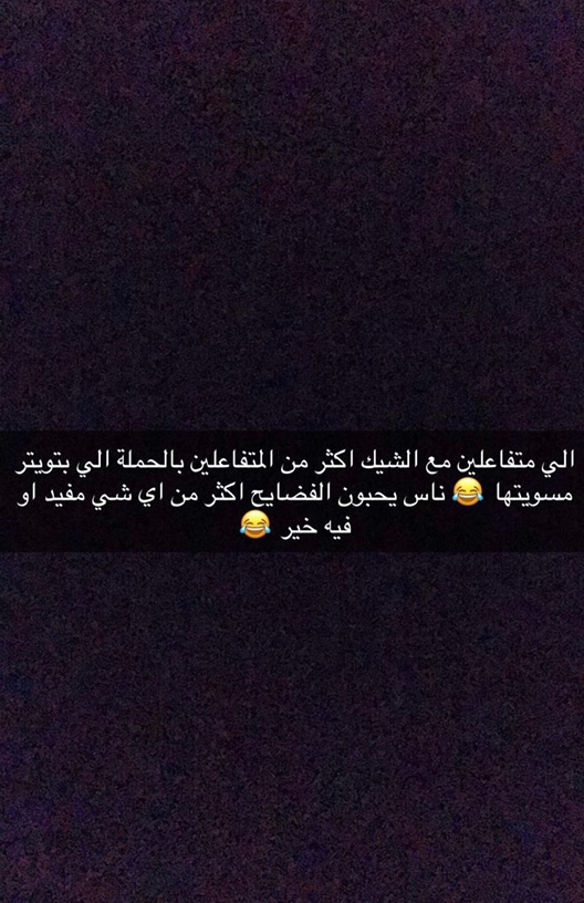 وختمت: "المشكلة يعيبون ويشتمون ويقذفون ويصير موضوع حديثهم ومجلسهم ويجهلون ان اهم من يساهم في نشر الفساد ترى هو صاحب الفضيحة غلط، الي ينشر ويتكلم ويضحك اهو الغلط لو تحقرون المواضيع التافهة وتلتفتون للإفادة كان صرنا ارقى مجتمع بالعالم "البعض".