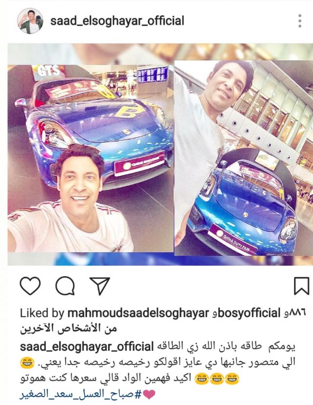 شارك المطرب الشعبي سعد الصغير صورة له عبر حسابه الشخصي على تطبيق "إنستغرام"، يظهر فيها بجوار سيارة فارهة وباهظة الثمن.