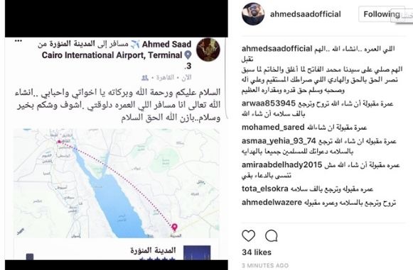 وكتب سعد، عبر صفحته الشخصية على "إنستغرام"، " إلى العمرة إن شاء الله اللهم تقبل.. اللهم صلى على سيدنا محمد الفاتح لما أغلق والخاتم لما سبق ناصر الحق بالحق والهادي إلى صراطك المستقيم وعلى آله وصحبه وسلم حق قدره ومقداره العظيم".