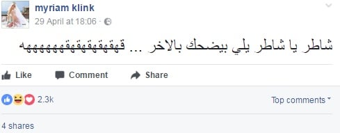 من جهتها، شمتت عارضة الأزياء المثيرة للجدل ميريام كلينك، بالراسي، التي كانت طلبت في وقتٍ سابق منع عرض فيديو كليب "فوت الغول".