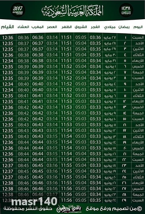 نشر موقع "دليل مصر" موعد بداية شهر رمضان للعام الهجري 1438 وأوقات الإمساكية في مصر والسعودية والصلوات بتوقيت القاهرة والرياض.