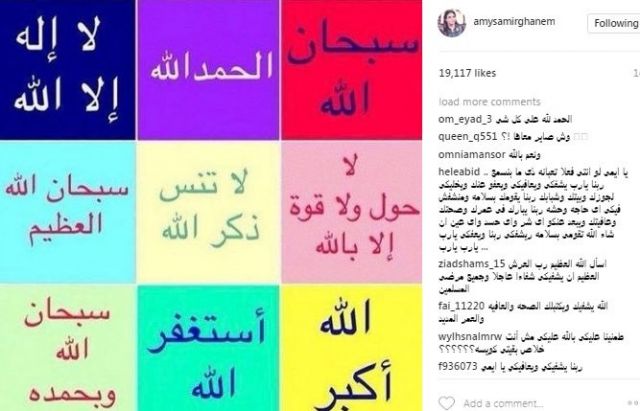 وشاركت إيمي منشوراً، تدعو فيه وتتقرب فيه إلى الله، بعد أن غابت لعدة أيام أثناء مرض والدها الفنان سمير غانم.