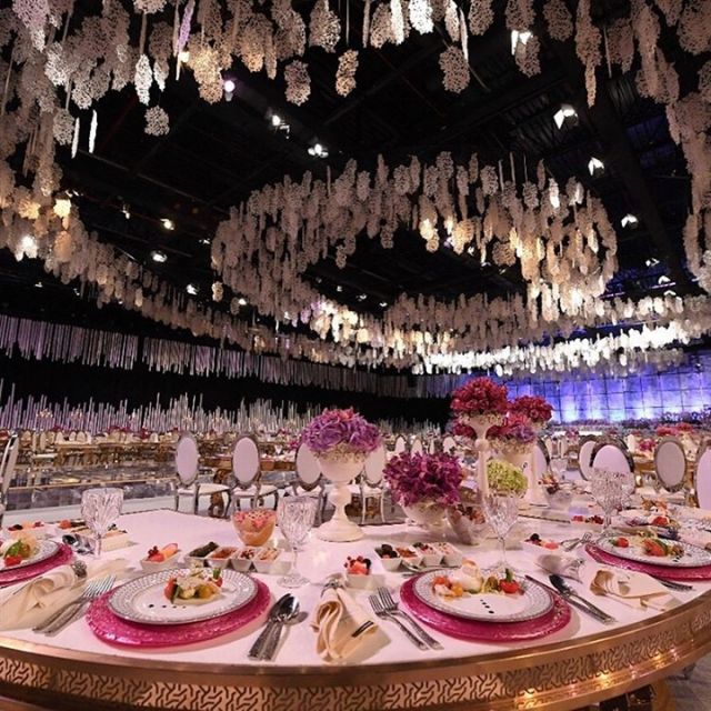 وقامت "الملكة" بتسريب مجموعة من الصور من تحضيرات الزفاف قبل دخول المدعوين، وظهرت الطاولات المزينة بالزهور والاطباق الفخمة، إضافة الى كرسي العروسين المزينة بكمية كبيرة من الورود البنفسجية، وتم الاحتفال بزفاف الشابة بأجواء أسطورية مليئة بالسعادة والرقي.